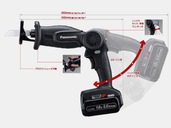 商品番号:EZ47A1LJ2G-B 充電レシプロソー EZ47A1 18V 5Ah 電池セット品 Panasonic