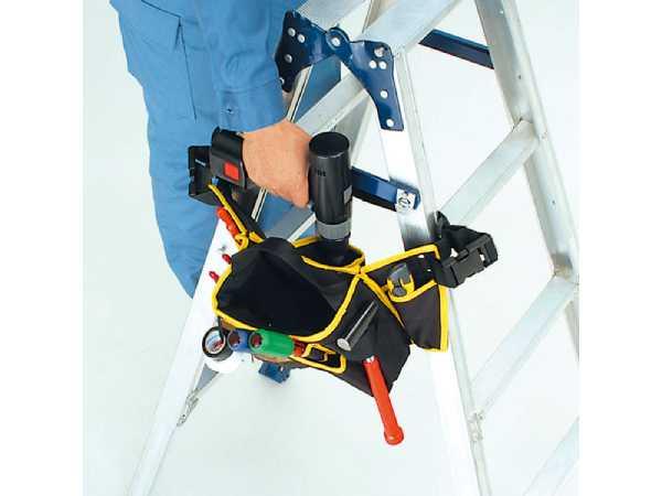脚立やハシゴに取り付けて、高所で便利に使える ●数多くのポケットやサックが、多彩なツールに対応 ●脚立に…正面・側面ともに取り付けOK ●ハシゴに…ワンタッチ着脱のバックルでハシゴにも取り付け簡単 ●腰袋として…ベルトで腰に巻くこともできて、持ち運びにも便利 ●手提げバッグとして…手提げツールバッグとしても使えます ●サイズ:幅280×奥行200×高さ230mm ・原産国:中国