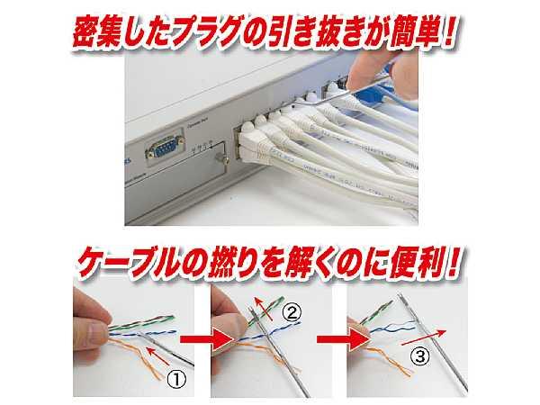 密着したプラグの引き抜きが簡単! ●密集状態のモジュラープラグを簡単に引き抜くことができる簡易ツール ●現行のほぼ全てのモジュラープラグに適応 ●ほとんどのモジュラーカバーは装着したままでOK ●ケーブルの撚りを解くときも便利 ●モジュラープラグのストッパーを外し、テコの動きでプラグを僅かに引き出すことができる ・全長:210mm ・質量:40g ・原産国:日本
