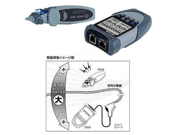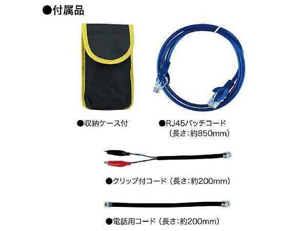 配線経路の探査や、導通検査(電線・LAN)が可能 ①配線経路の探査ができる(屋内配線・同軸線・LAN配線) ②導通検査(電線・LAN)が可能 ●配線探査の検知にバイブレーション機能付 ●アナログとデジタルの2方式で探査精度が向上 ●電話配線の通電チェックが可能 ●LEDライト付 ●電池交換お知らせ機能 ●オートパワーオフ機能 ●受信器を送信器に収納でき、携帯に便利 ●付属品 ・RJ45パッチコード(長さ:約850mm) ・収納ケース ・クリップ付コード(長さ:約200mm) ・電話用コード(長さ:約200mm) ■ 仕様 ●配線の探査 ・信号周波数:150kHz ・出力電圧:23Vp-p ・探査距離:1km ●導通検査(電線) ・検査電圧:13V ・導通状態表示:SCAN_LED点灯 ●導通検査(LAN) ・検査周波数:SLOW 1.2Hz FAST 3.5Hz ・信号出力表示:緑LED点灯(送信器) ・信号入力表示:緑LED点灯(受信器) ●使用温度範囲:0℃~40℃(80%RH以下) ●オートパワーオフ機能 ●電池交換お知らせ機能 〇送信器 ・使用電池:単3形乾電池×3(アルカリ電池推奨) ・サイズ:65×32×120mm ・質量:85g(電池含まない) 〇受信器 ・使用電池:006P/9V×1(アルカリ電池推奨) ・サイズ:35×187×29mm ・質量:67g(電池含まない) ※電池は付属していません ・原産国:中国