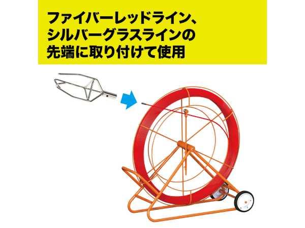 地中管内通線用の先端誘導具に引っ掛け、引っ張り出すための金具 ●ファイバーレッドライン、シルバーグラスラインの 先端に取り付けて使用 ●先端誘導金具の反対側から挿入し、地中線管内の途中で 先端誘導金具を引っ掛けて、引っ張り出すための金具 ●別売りのRG・GL用 アダプター金具を使用して ファイバーレッドライン、シルバーグラスラインに対応 ■ 仕様 ・本体サイズ・質量:86mm×204mm×75mm・235g ・ネジサイズ:M12メス ・材質 スチール ・原産国:日本