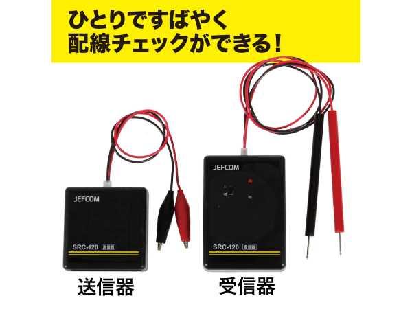 ひとりですばやく配線チェックができる! ●ひとりで探査できるので、省力化が可能 ●音と光(LED)で表示するので、確実な探査ができます ・調べたい電線端部は「ピッ、ピッ、ピッ」という音とLEDの点滅で確認 ・電線がショートしている場合は、「ピー」という音とLEDの点灯でお知らせ ●電球や電気器具のコードの導通チェックが可能です ■ 仕様 ◇受信器 ・消費電力:360mW ・最大導通テスト可能回路抵抗:150Ω ・動作距離:約200m(電線の種類により異なります) ・使用電池:9V(006P)アルカリ乾電池(電池は付属していません) ・連続使用時間:12時間以上 ・テストリードケーブル長:650mm ・本体サイズ:W67×D28×H92mm ・本体質量:110g(電池含む) ◇送信器 ・クリップケーブル長:300mm ・本体サイズ:W67×D28×H67mm ・本体質量:50g ・材質 ABS ・原産国:日本