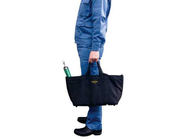 見た目はシンプル!機能は満載!のトートバッグ ●外見は普通のトートバッグでも中身はスゴイ!! ●手さげ、肩掛けの2Way ●出し入れしやすい広口開口部 ●内側にサック7個・ポケット3個 ●丈夫な底部(樹脂板+緩衝スポンジ)電動工具の収納も安心!OK! ●軽くて丈夫なキャンバス地 ●外側にポケット2個付 ●サイズ:幅500×奥行175×高さ270mm ●質量:700g ・原産国:中国