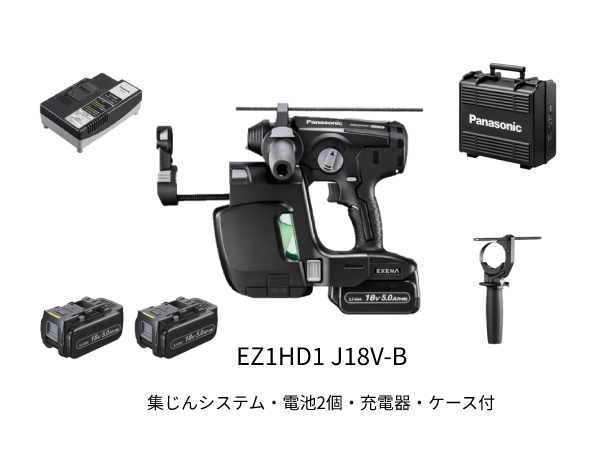 EZ1HD1J18V-B 電動ハンマードリル 充電式 EZ1HD1 18V 5Ah 電池セット品 集じんシステム付き