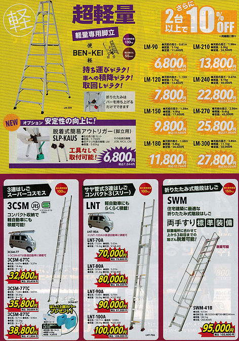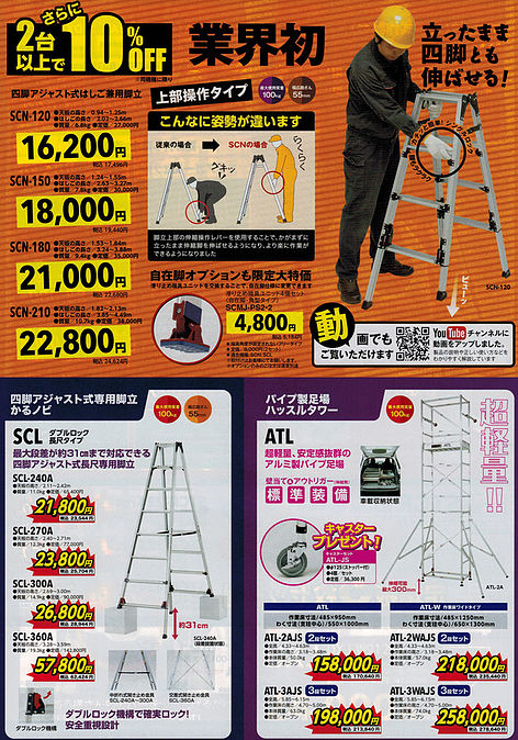 個人的には、四脚アジャスト式長尺専用脚立が魅力的です。