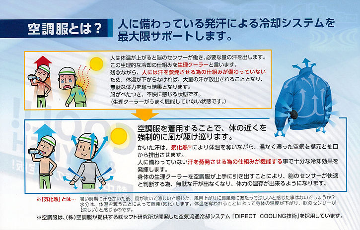 先日から少しご紹介しております空調服ですが、本日は㈱エヌ・エス・ピー オリジナル空調服のご紹介です。