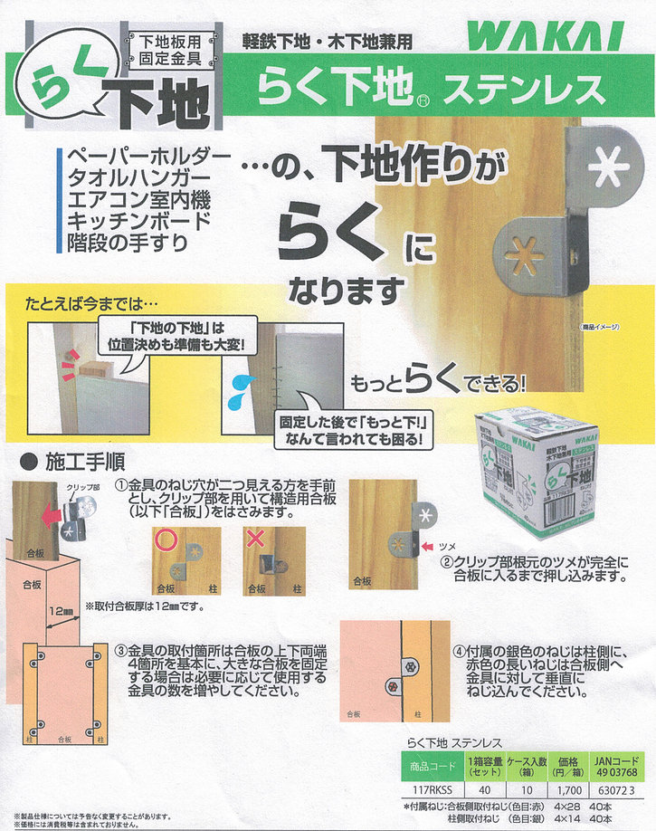 ”らく下地”下地板用固定金具のご紹介 DIY女子が増える中、「うまく板を組み合わせられるか不安…」と、なかなかDIYを…