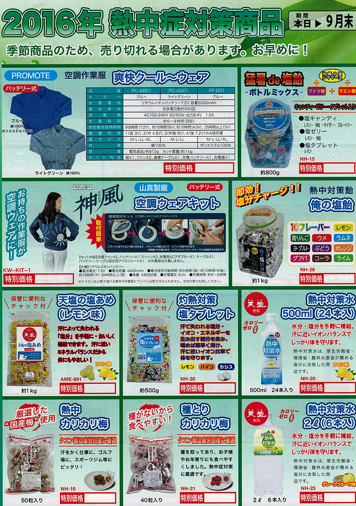 2016年 熱中症対策商品のご紹介です こんにちは、時商です。かなりの暑さになってきました。湿度も上がっているので、作業…