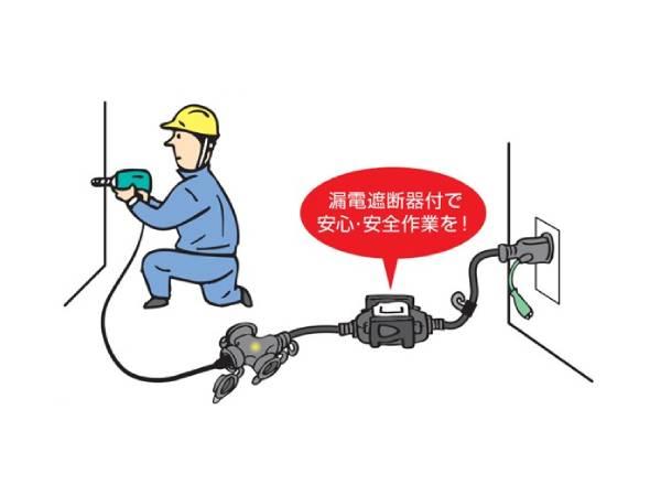 "漏電過負荷短絡保護兼用 漏電遮断器付延長コード 【BFX-013KC-SP】 SUNPEACEサンピース" 「機器使用時の漏電・使い過ぎ・短絡を感知・自動で遮断!!15Aを超える使い過ぎを感知!」 ●電気機器を使用する際に簡単に漏電遮断器を設置できます。 ●屋外用防雨型なので雨中でも安全に作業が行えます。 ●使い過ぎも感知する過負荷漏電遮断器付 ●防雨型ブレーカーボックス・・・ブレーカーボックスは完全防雨構造なので雨中でも安心して使えます、落下にも強い耐衝撃プロテクター付 ●パイロットランプ付トリプルタップ・・・3口タイプはコンセントボディの中に通電確認ができるパイロットランプ付トリプルタップ仕様 用途:各種電動工具(100V)、各種照明器具(100V)、水中ポンプショーケース、庭園灯など 仕様・規格 ■延長コード BFX-013KC-SP 仕様 電線仕様 長さ(m):0.7 電線仕様 種別・太さ(㎟)・心数(C):VCT2.0×3 コンセント仕様 定格:2P・15A・125V接地付 コンセント仕様 形状×個数:2P接地付兼用プラグ×3 漏電遮断器:過負荷付 摘要:2P/2P接地付兼用プラグ コンセント防雨キャップ パイロットランプ付トリプルタップ 質量:0.65 ※電線長はコンセント側が0.2m、プラグ側が0.5mとなっております。 ※電線長は今セットタップ、プラグ内収納長を含みます。 ■過負荷漏電遮断器(漏電過負荷短絡保護兼用型) 仕様 定格:2P 100/200V兼用 15A 漏電感度電流:15mA 高速形:衝撃波不動作形 注意事項 ●本製品を取り付けた電路で漏電、地絡、過負荷が発生した時、以下の条件では同電路内の元電源の漏電遮断器または安全ブレーカーが本製品の漏電遮断器より先に動作することがありますので、ご注意ください。 ①漏電・地絡時15mA以上の漏電の場合 ②短絡・地絡・過負荷時、同じ電路内で元電源の漏電遮断器または安全ブレーカーの定格電流を大きく超えた場合 ●安全にご使用いただくために、接続する機器、器具のプラグは防雨型プラグを使用してください。 ●ご使用の前に、取扱説明文をよくお読みいただいた上で、正しくお取り扱いください。