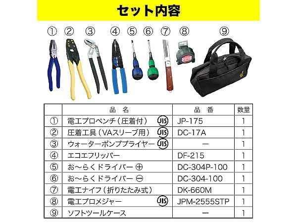 商品番号:D-KIT-G 電気工事士技能試験工具キット ジェフコム