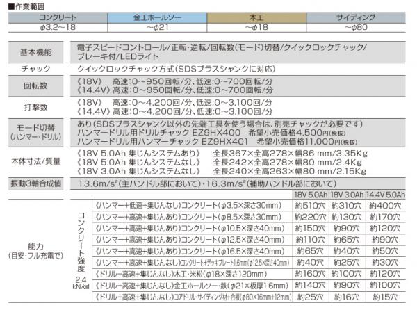 商品番号:EZ1HD1J18V-B 電動ハンマードリル 充電式 EZ1HD1 18V 5Ah 電池セット品 集じんシステム付き