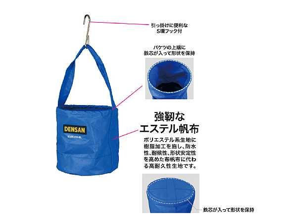 強靭なエステル帆布を使用 雨や汚れに強く、丈夫で長持ち ●エステル帆布製底タイプ ・鉄芯が入って形状を保持 ●引っ掛けに便利なS環フック付 ●バケツの上端に鉄芯が入って形状を保持 ●強靭なエステル帆布 ・ポリエステル系生地に樹脂加工を施し、防水性、耐候性、形状安定性を高めた 布帆布に代わる高耐久性生地です。 ●外寸:φ210×高さ230mm ●内寸:φ190×高さ220mm ・本体サイズ・質量:210mm×210mm×230mm・570g ・材質 本体:エステル帆布、鉄芯:鉄、S環フック:鉄(ニッケルメッキ) ・原産国:中国