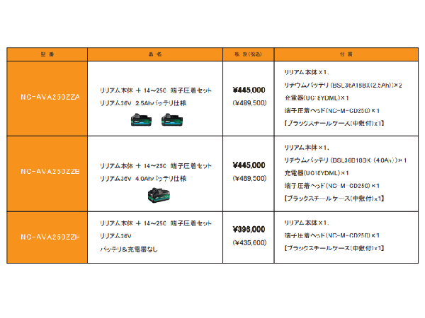 商品番号:NC-AVA250ZZB 油圧マルチパワーツール 端子圧着セット 西田製作所