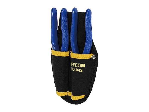 ハードな使用に耐える、タフなポリエステルキャンバスのツールホルダー ●ペンチ2丁吊 ●サイズ:前幅130×全長215mm ●質量:60g ・原産国:中国