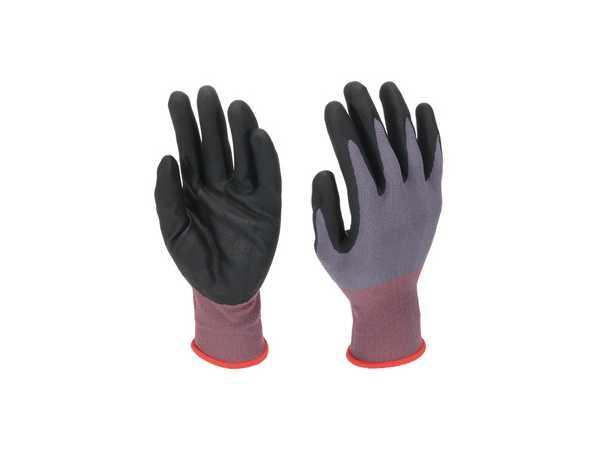 フィット×グリップ 摩耗に強い ●手首にゴム糸を使用して手にぴったりフィット ●耐久性が高く、グリップ力に優れる ●やわらかく、手によくなじむ ●Mサイズ ・全長:21.5cm ・中指の長さ:8.0cm ・手のひらまわり:18.2cm ●配送・流通業に ●建設・土木作業に ●配管・空調作業に ■ 仕様 ・本体サイズ※・質量:182mm×15mm×215mm・40g ※サイズ許容誤差±5% ・材質 手袋:ポリエステル、ナイロン、スパンデックス 表面コーティング:ニトリルゴム ・原産国:中国