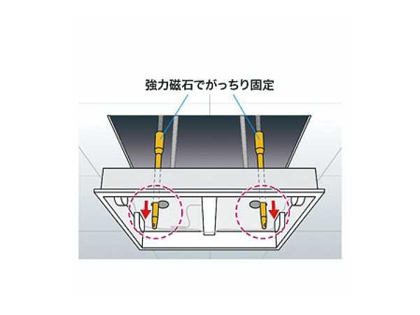 強力磁石でがっちり固定 ●天井照明・空調機器等の、吊りボルトへの固定作業が楽々 できる取付用ガイド ●強力なマグネットで吊りボルトに固定できる ●天井面に器具を収める前にボルト位置がわかる ●対応ボルト径:3/8 ●2本セット ■ 仕様 ・本体サイズ・質量:12mm×12mm×400mm・23g ●全長:約300mm ※取付用のガイドなので器具を吊り下げたりできません。 ・原産国:日本