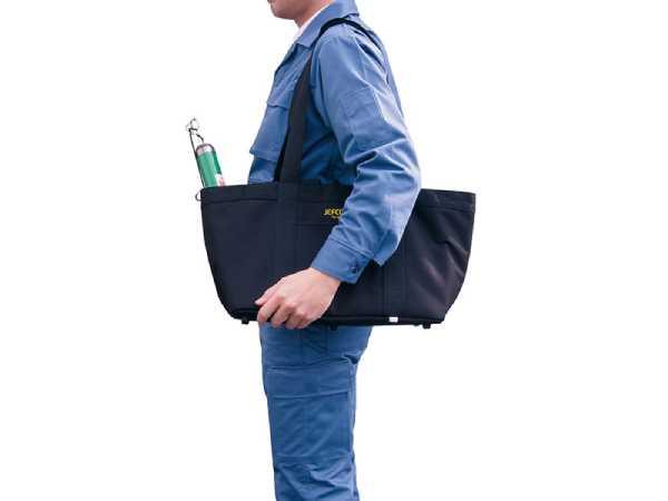 見た目はシンプル!機能は満載!のトートバッグ ●外見は普通のトートバッグでも中身はスゴイ!! ●手さげ、肩掛けの2Way ●出し入れしやすい広口開口部 ●内側にサック7個・ポケット3個 ●丈夫な底部(樹脂板+緩衝スポンジ)電動工具の収納も安心!OK! ●軽くて丈夫なキャンバス地 ●外側にポケット2個付 ●サイズ:幅500×奥行175×高さ270mm ●質量:700g ・原産国:中国